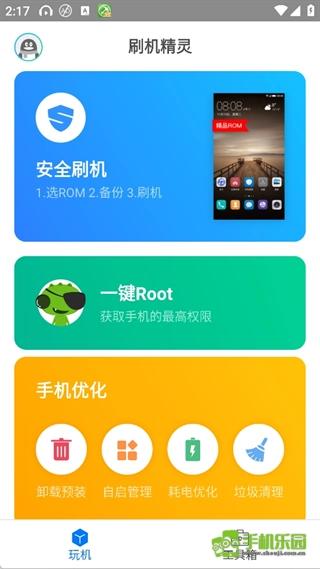 1、刷金精灵的全部功能都集中在主页,能够一键root获取最高权限,其中也包含耗电优化功能。