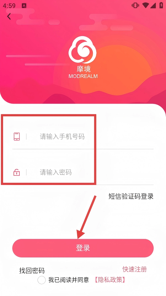 4、在登录页面,输入【手机号码】和【密码】,勾选同意协议后点击【登录】按钮完成登录。