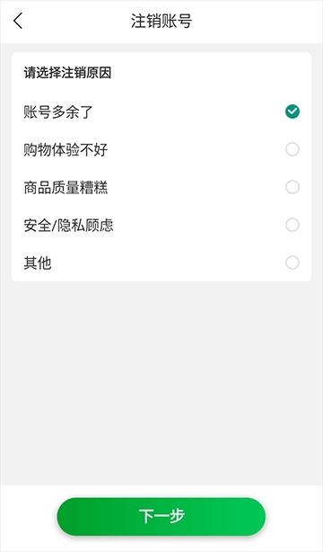 4、选择注销原因,点击“下一步”