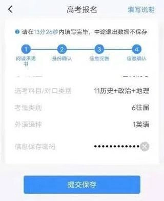 3、选择高考报名,看到提示需要在指定时间内填写完毕;