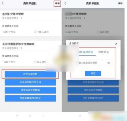 6、考生确认所填写志愿草稿准确无误后,必须点击【志愿填报】→【草稿箱】→【提交】,提交保存考生志愿,才算填报志愿成功。认证通过后,才能成功保存考生志愿,并看到保存成功的提示。