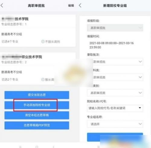 5、也可通过【志愿填报】→【草稿箱】,手动添加院校专业组到草稿箱。