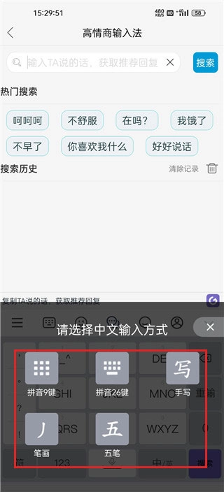 一、在聊天窗口里复制对方发送的内容后,键盘界面会智能提供多种高情商的回复选项,只需直接点击就能将回复发送给对方。