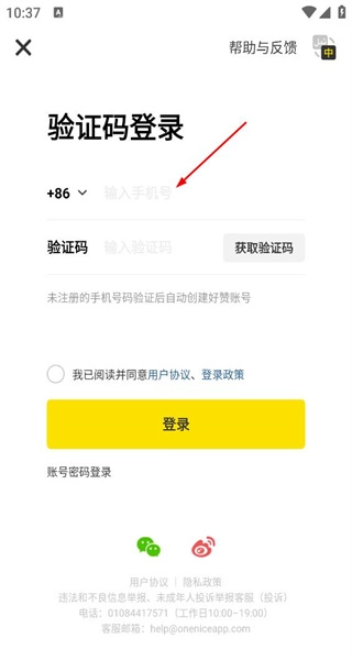 4、进入验证码登录页面,需输入手机号码获取验证码,勾选协议后点击登录,还有其他登录方式。