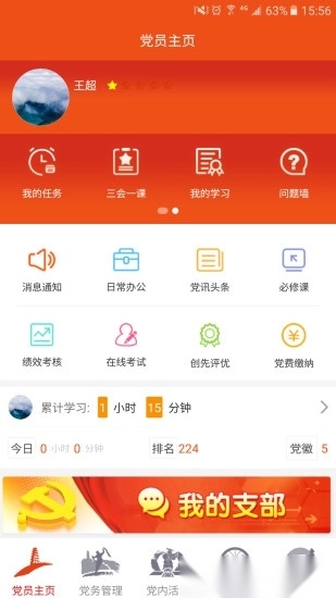 3.首页新增党员小书包学习时长展示