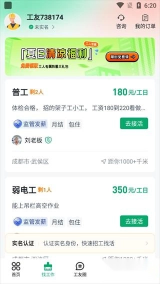 - 支持设置找活状态,告别被动等活,系统会智能匹配招工岗位