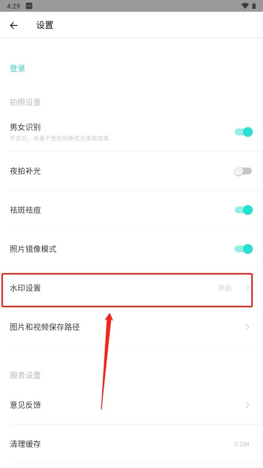 5、点击图示位置关闭即可,这样拍摄的照片就不会有Faceu激萌的水印了