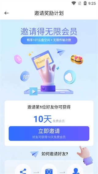 7、另外,如果你想要免费享受pikpak会员服务,还可邀请好友免费领取。