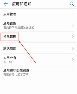1、打开手机设置,然后选择”应用和通知“,在应用和通知的功能界面下选择”权限管理“的功能选项。