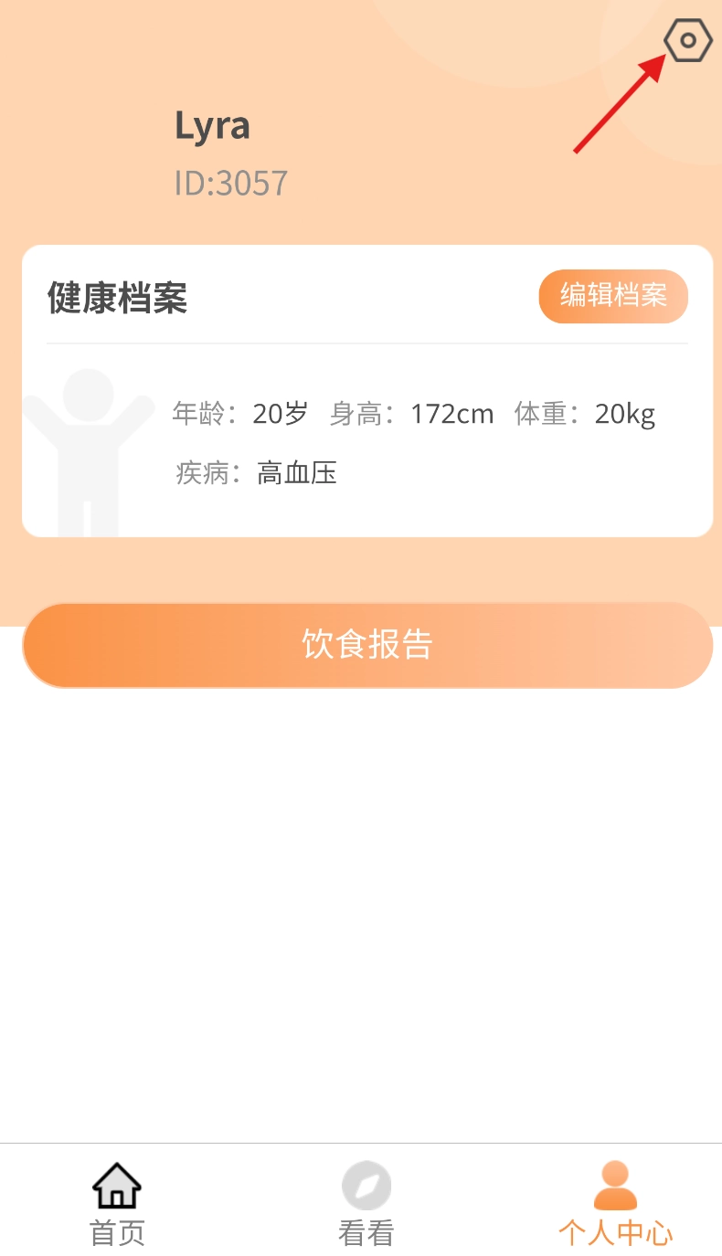 2、进入个人中心页面后,留意右上角位置,找到 “设置” 选项并点击打开设置界面。
