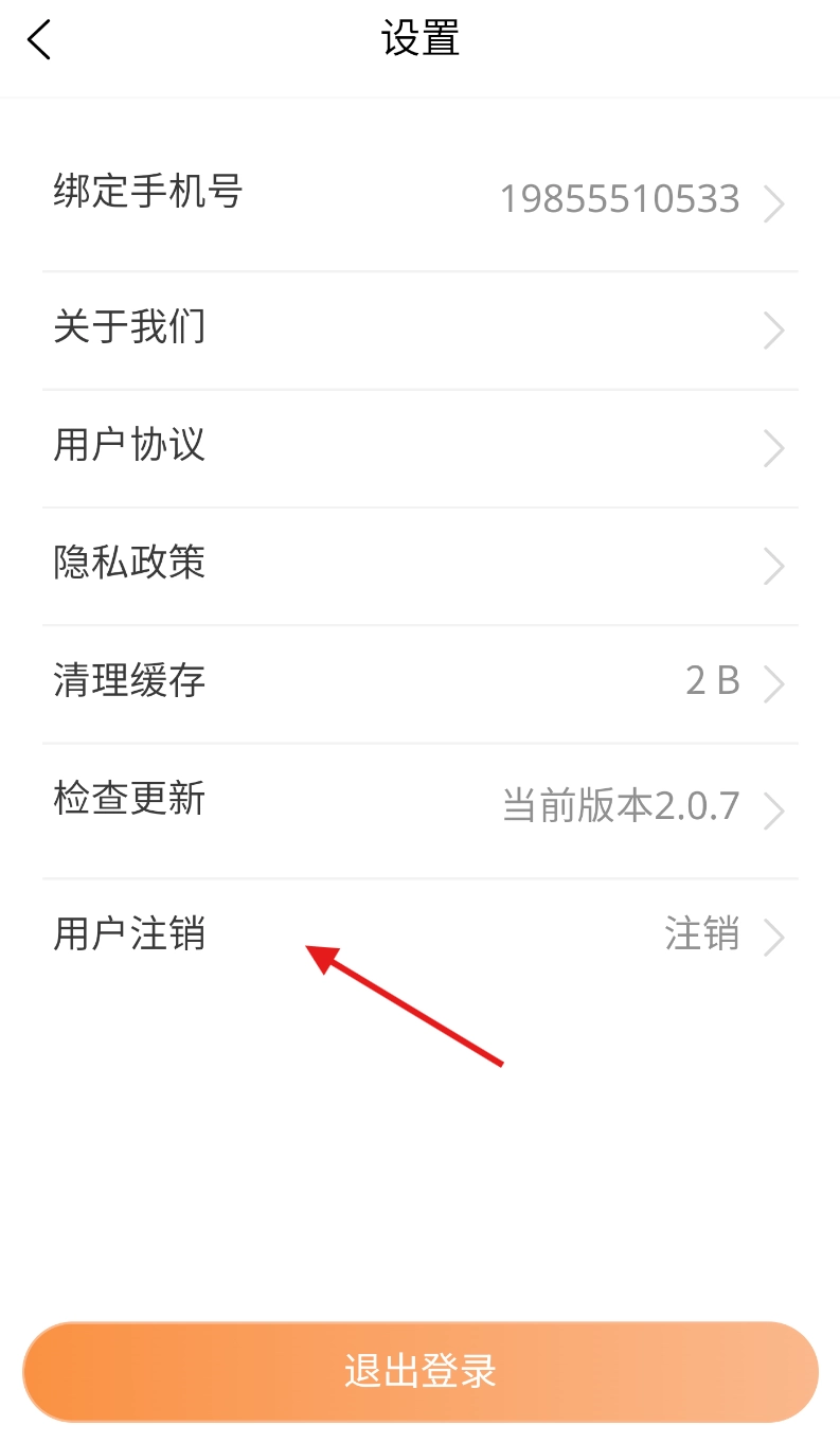 3、在设置界面内下滑浏览,找到 “用户注销” 功能入口,点击进入注销操作页面。