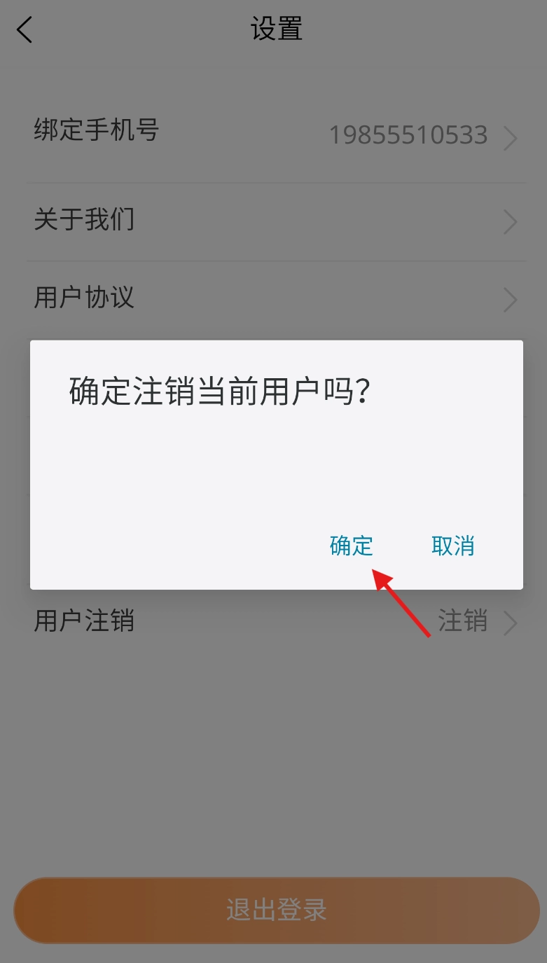 4、在用户注销页面,仔细阅读相关提示后,点击 “确认” 按钮完成账号注销流程。
