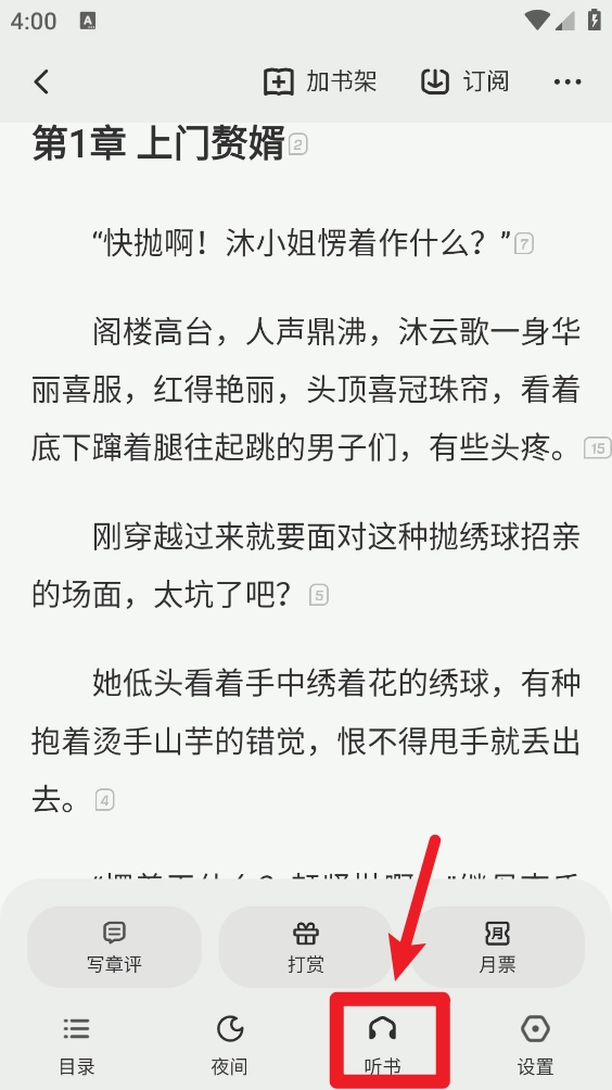 4、如图所示,在阅读界面点击"听书"按钮。