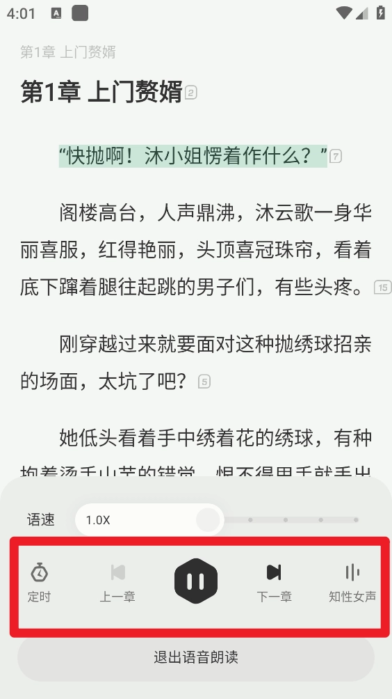5、最后即可开启听书体验,支持语速和定时听书等。