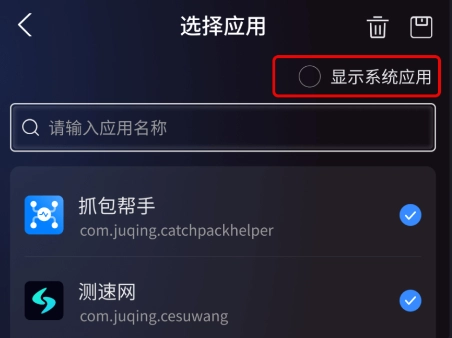 2、应用程序支持多选。勾选“显示系统应用”后,列表会展示出本系统预置的应用程序。