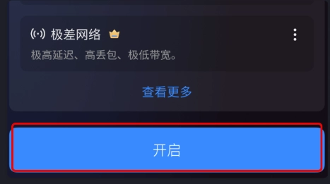 1、首页底部点击“开启”,开始进行弱网测试,页面显示悬浮窗。