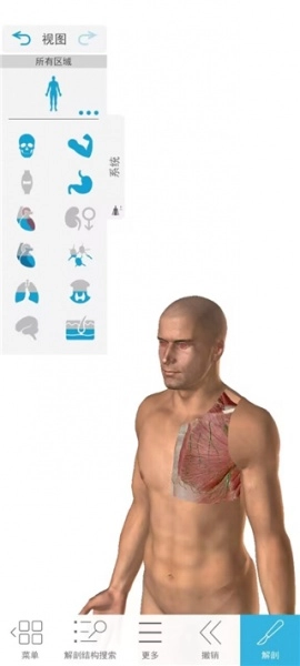 1、进入2026人体解剖学图谱软件后,我们能看到人体区域、系统、大体解剖实验室、显微镜解剖结构等选项。