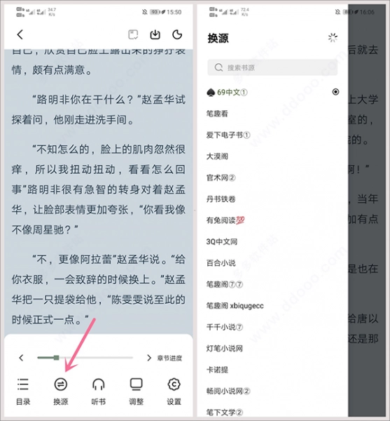 3、在阅读的时候还可自由的换源