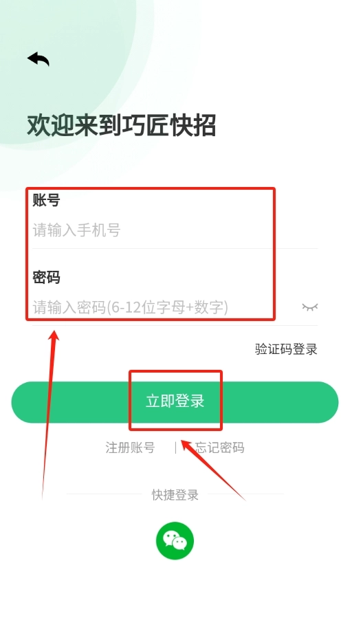 3、成功登录后系统会自动跳转回主页面,这时候点击快速招工就可以招工了。