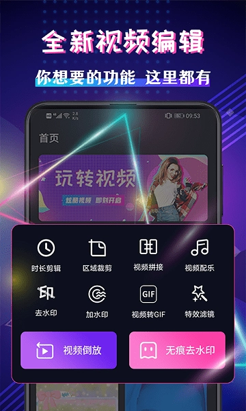 视频编辑剪辑大师手机版为您提供了一站式的视频编辑解决方案,包含视频剪辑、视频倒放、无痕去水印等实用功能,是您在手机上制作视频的得力助手!