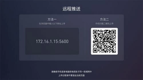远程推送教程请确保手机或者电脑和电视处于同一局域网中,上传过程请不要退出当前页面;