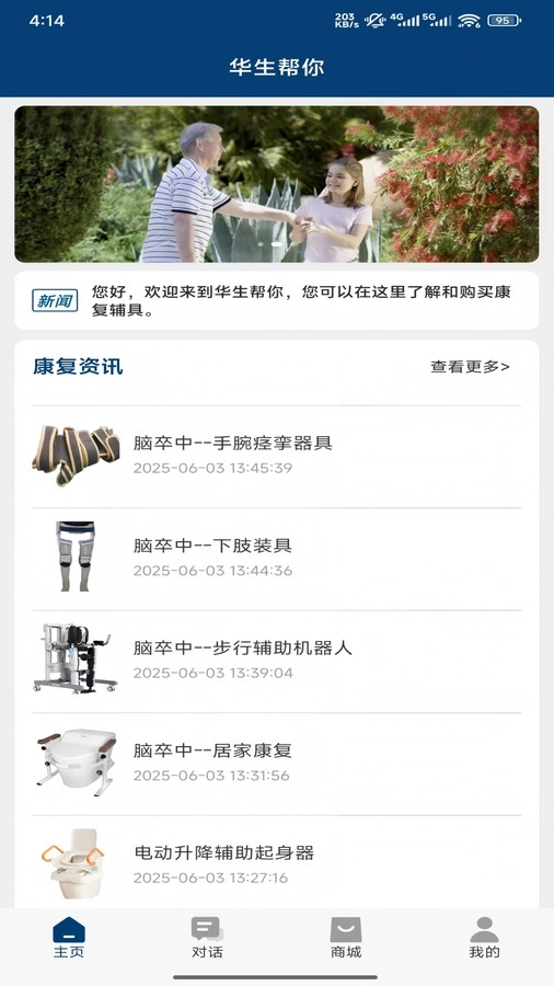 华生帮你是一款聚焦康复领域的专业应用,致力于为康复患者、康复治疗师和康复辅具使用者提供全方位的康复资讯与实用的康复辅具信息。它通过整合前沿的康复资讯、专业的康复指导以及实用的辅具推荐,助力用户更深入地了解康复知识,挑选适宜的康复辅具,从而提高康复成效与生活品质。