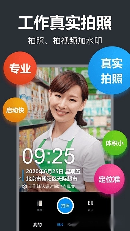 工作考勤打卡、外勤拍照打卡、旅行记录、美食拍照、微商水印等