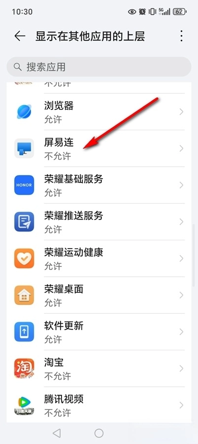 返回软件点击悬浮窗权限后面的【授权】