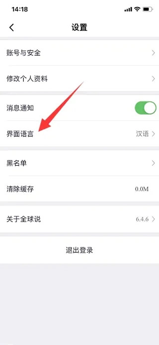 2、进入设置页面后,在功能列表中找到 “界面语言” 选项,点击打开该功能;