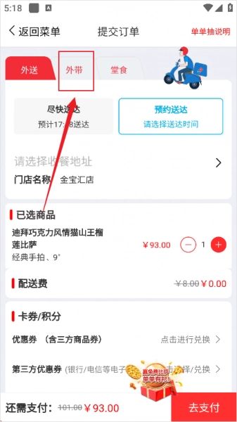 1、打开达美乐比萨App,选择好你需要自提的披萨