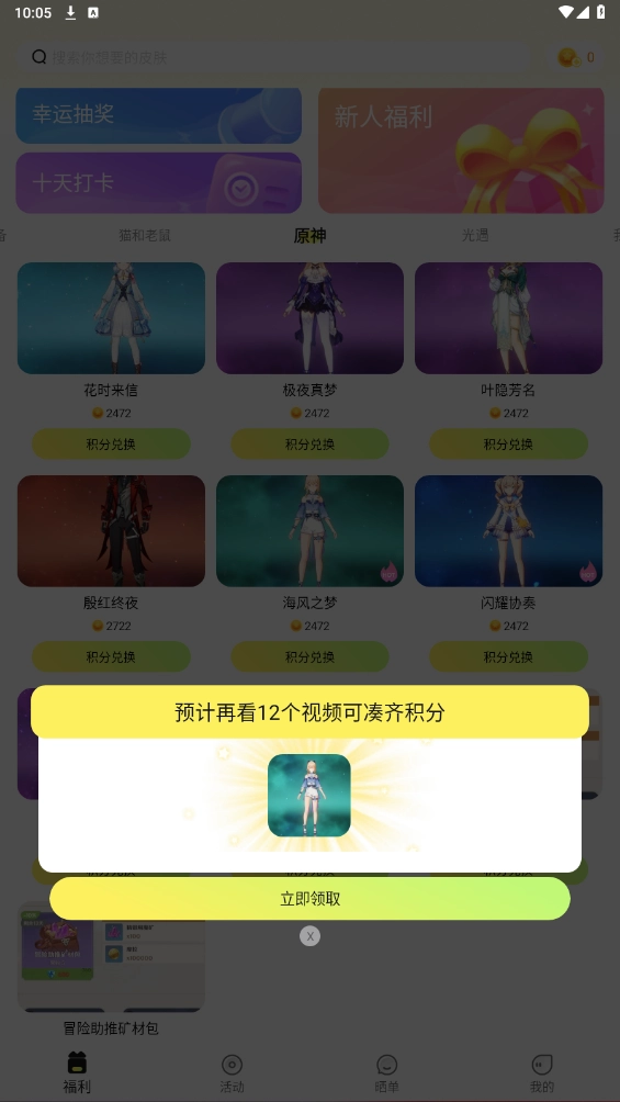 3、十天打卡,得爆款皮肤,皮肤领取的模式都是简单的。