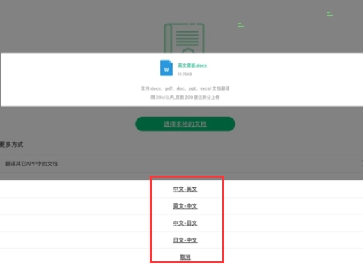 5.选择本地文档,这可能包含您想要翻译的文件或文本内容