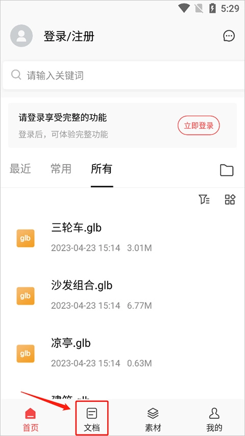 3、在“文档”页面选择自己需要导入的文件位置