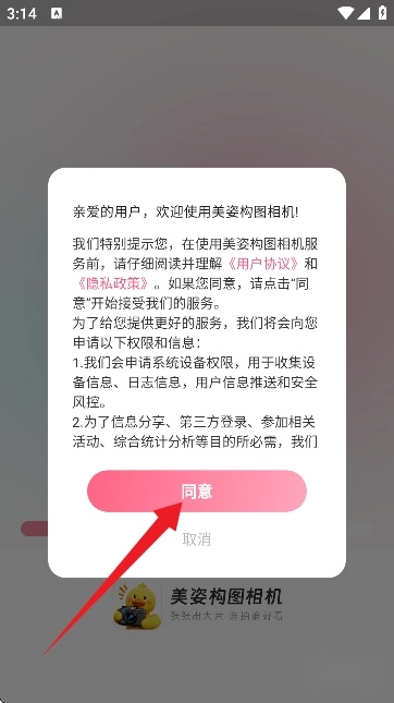 2、首次打开将进入欢迎页,请仔细阅读并勾选同意《用户协议》与《隐私政策》。