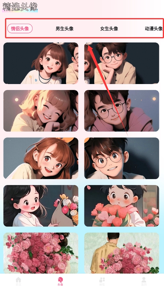 2、通过关键词快速搜索喜欢的头像,一键设置为手机桌面,操作简单便捷。