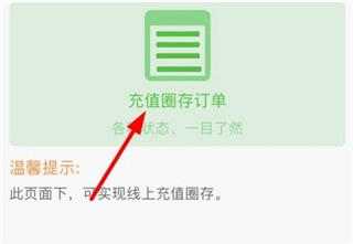 1、在“充值圈存”界面,我们点击“充值圈存订单”。