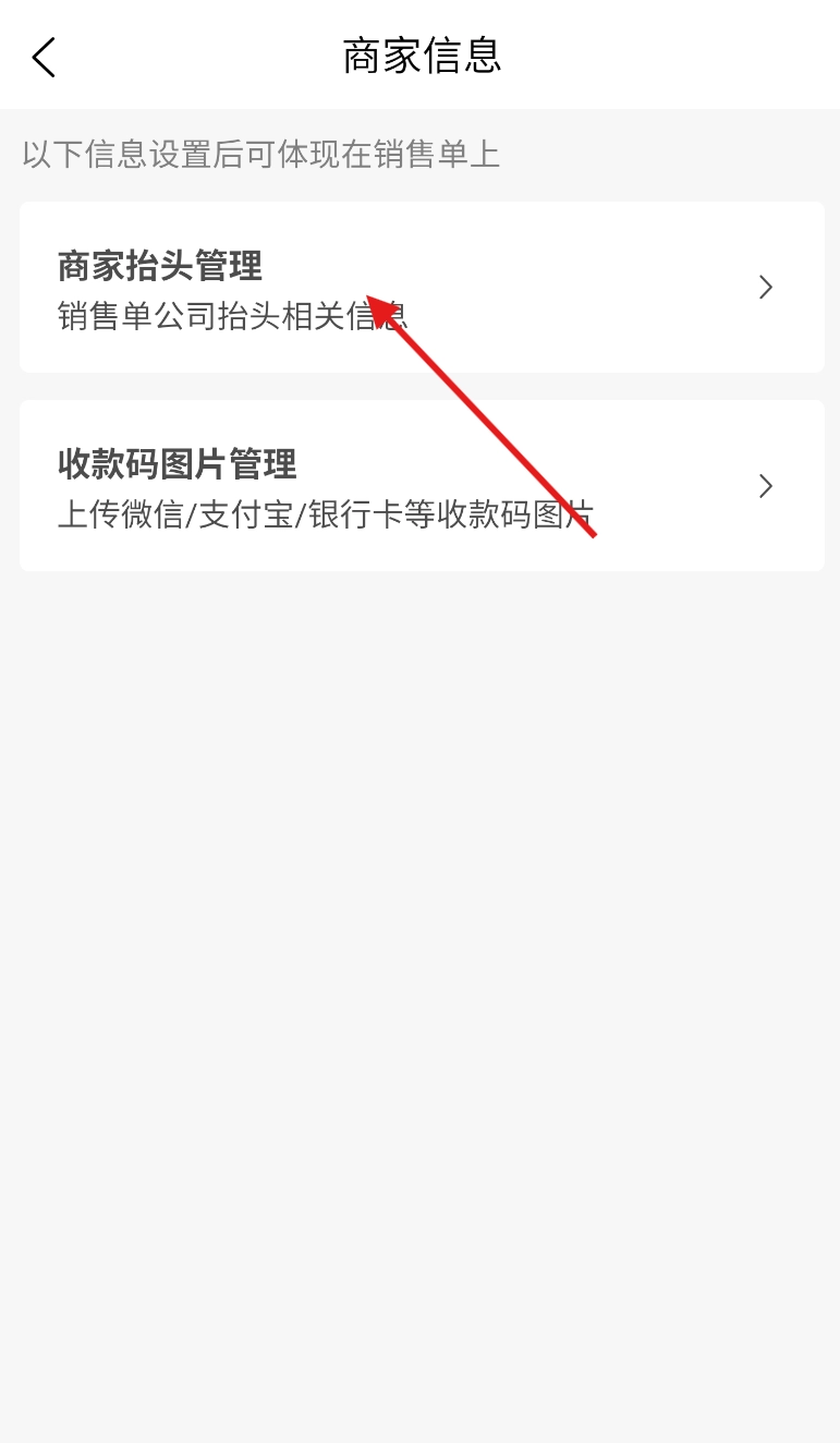 3、跳转至商家信息界面后,点击 “商家抬头管理” 板块,进入管理页面。