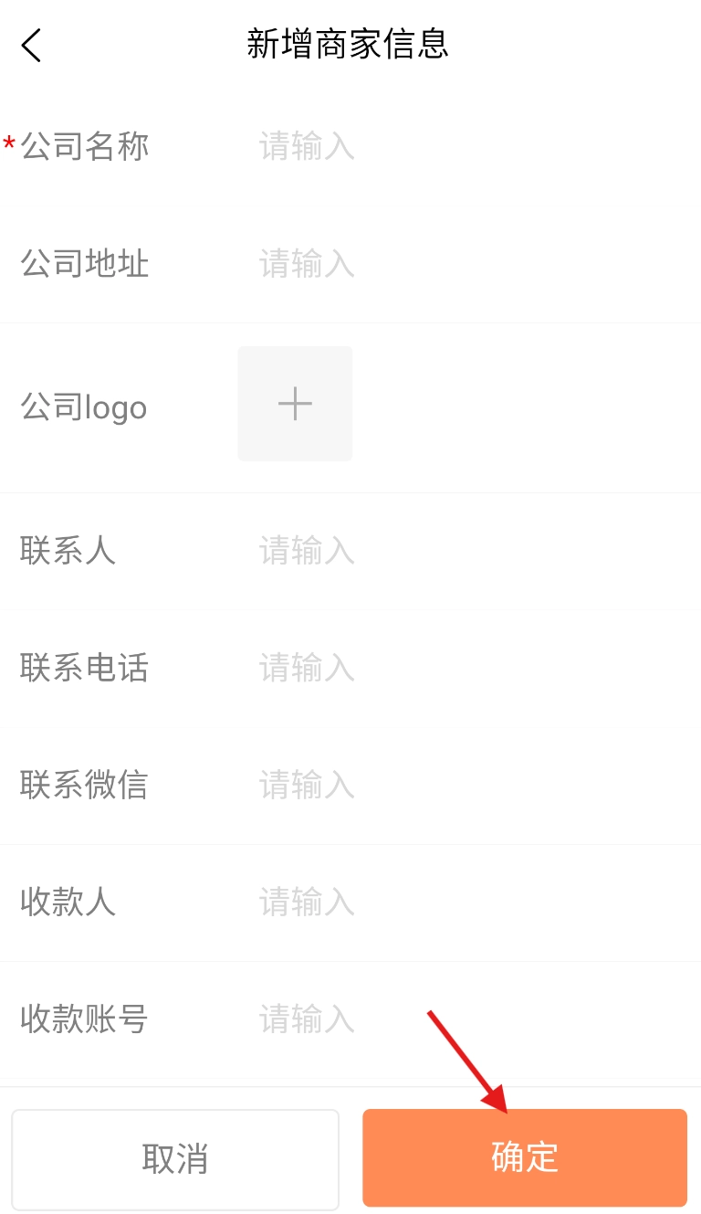 5、在弹出页面详细填写商家名称、联系方式等信息,核对无误后点击 “确定” 完成添加。