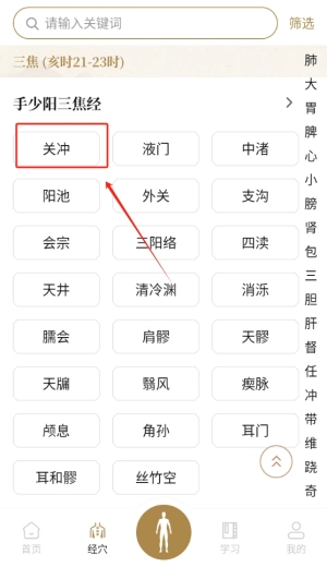 3、选择具体的经络进行详细了解,深入认识经络的特点与应用。