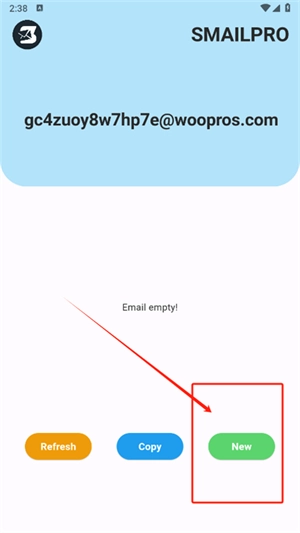 2、打开进入软件,点击new可以快速生成邮箱地址