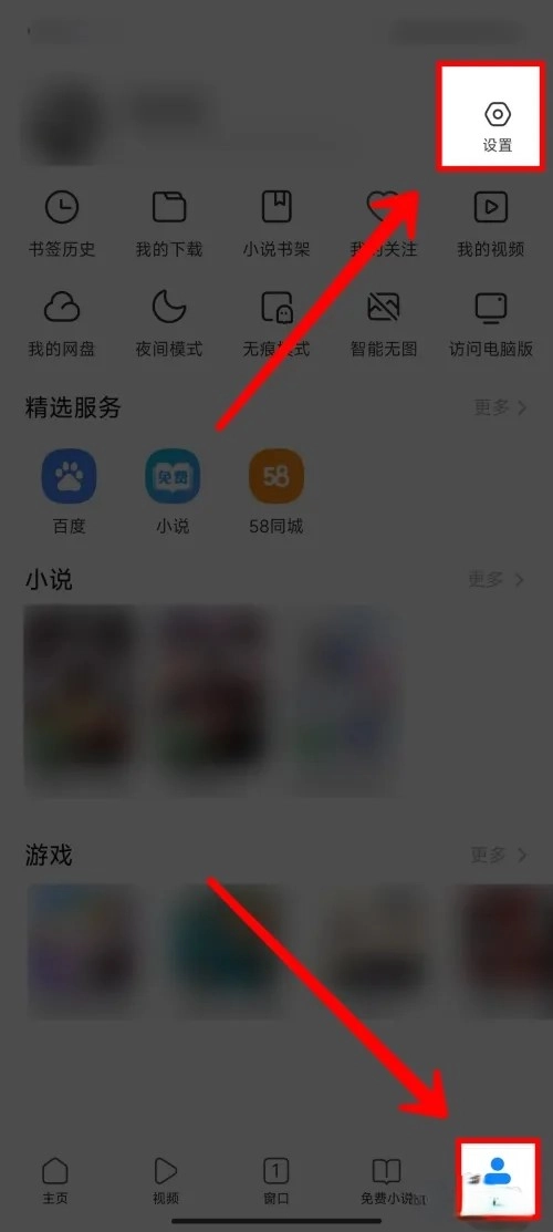 1、打开小米浏览器,在【我的】页面点击右上角的【设置】图标。