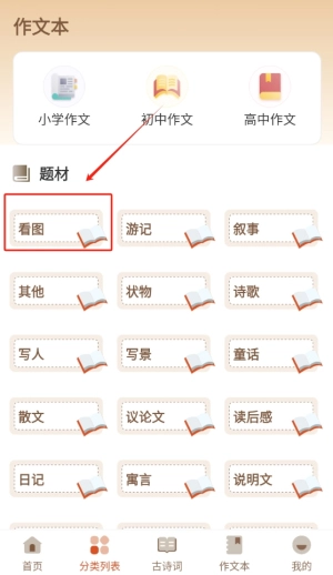 2、选择分类,浏览不同的范文,深入了解各类优秀作文,积累写作灵感与素材。