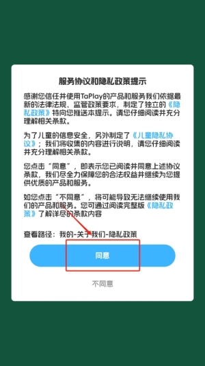1、首先点击同意按钮,即可顺利进入应用首页,开启丰富学习内容与游戏的体验之旅。