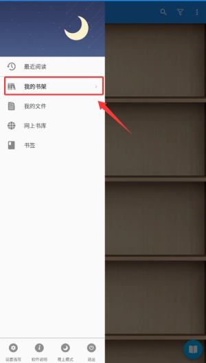 打开静读天下应用后,找到主界面左上角的菜单按钮并点击,即可展开功能选项列表。