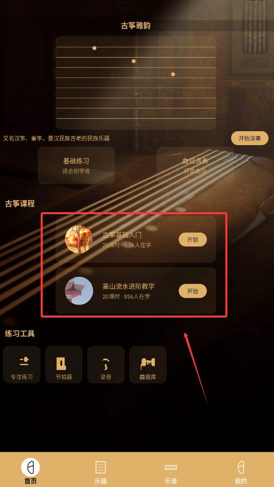 2、除了古筝教学,软件还提供乐器百科功能,详细介绍各类民族乐器和音乐知识,拓宽用户的艺术视野。