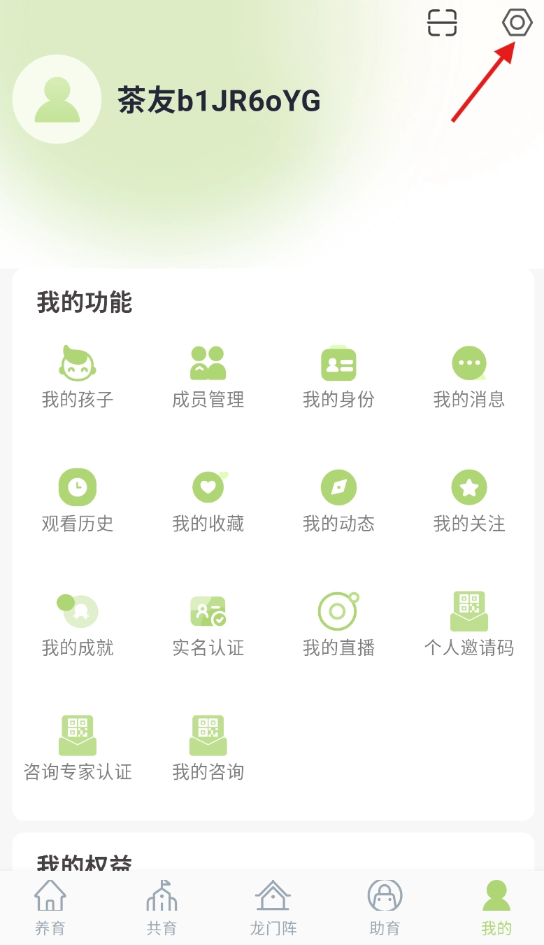 2、进入个人中心后,在页面右上方找到 “设置” 图标,点击该图标进入设置界面。