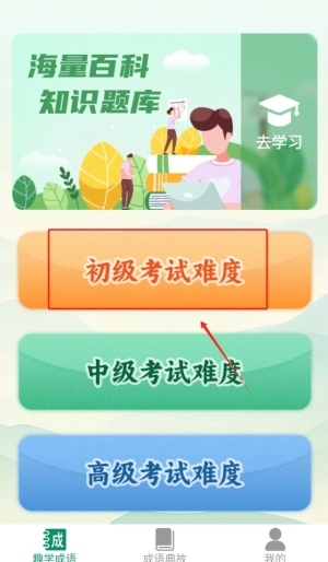 3、选择合适的难度开始进行成语答题,让学习变得更加有趣,并提升个人的成语掌握水平。