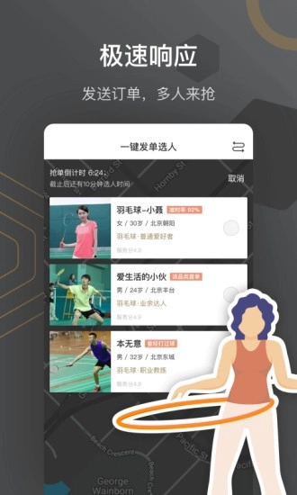 3、无论你是喜欢什么运动,都可以在平台上获得高质量的服务,更多的优质服务信息,都可以在平台上进行管理,无论是羽毛球,还是足球,乒乓球,都可以在平台上找到专业人士。
