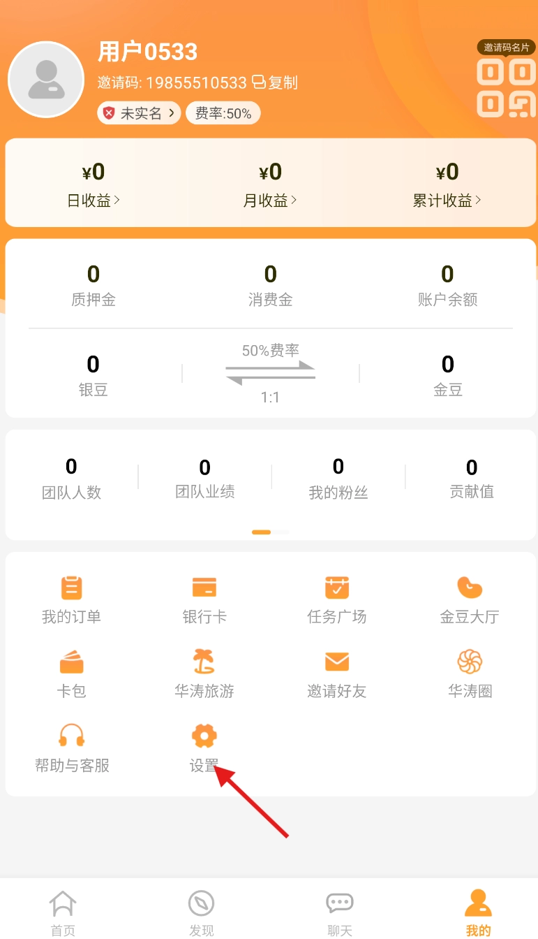 1、打开华涛生活APP进入首页后,找到界面右下角的“我的”选项,点击该选项即可进入个人中心页面。