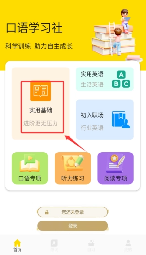 登录应用后,在首页找到并点击“英语入门”功能选项,即可进入基础学习页面。